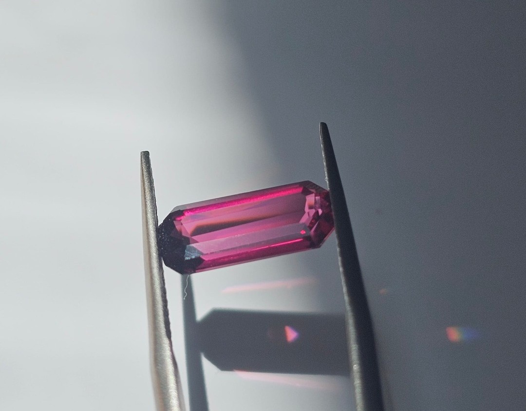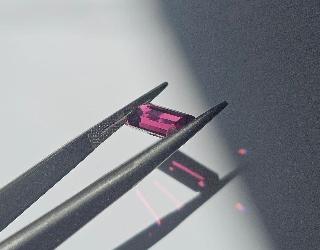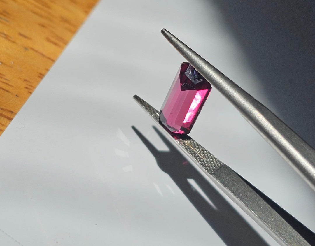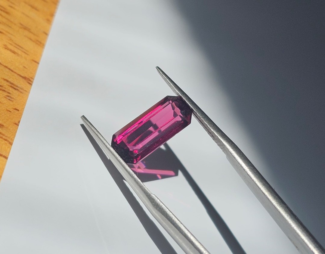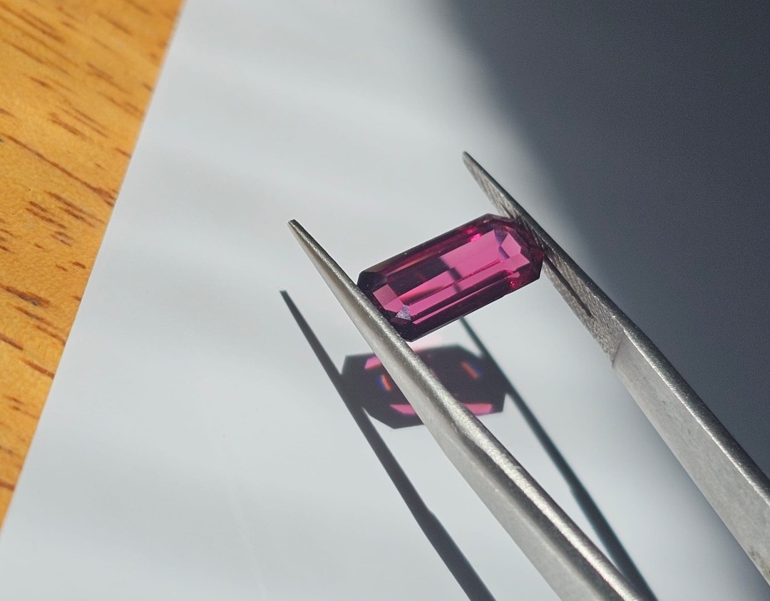 3.55ct natural rhodolite garnet from Sri Lanka. A vibrant raspberry-red gem known for supporting emotional healing, love, and inner strength. 100% natural and untreated.